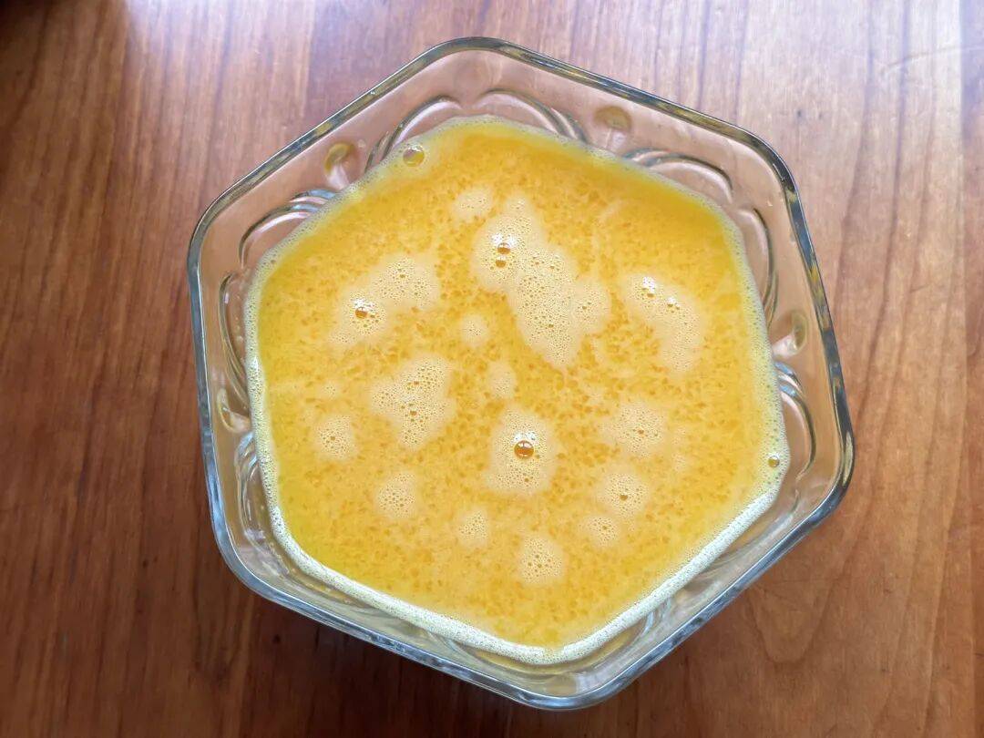 1、准备5个鸡蛋磕入碗中,加入少量的淀粉水、盐搅拌均匀,过筛一遍;