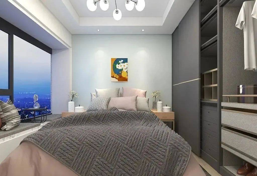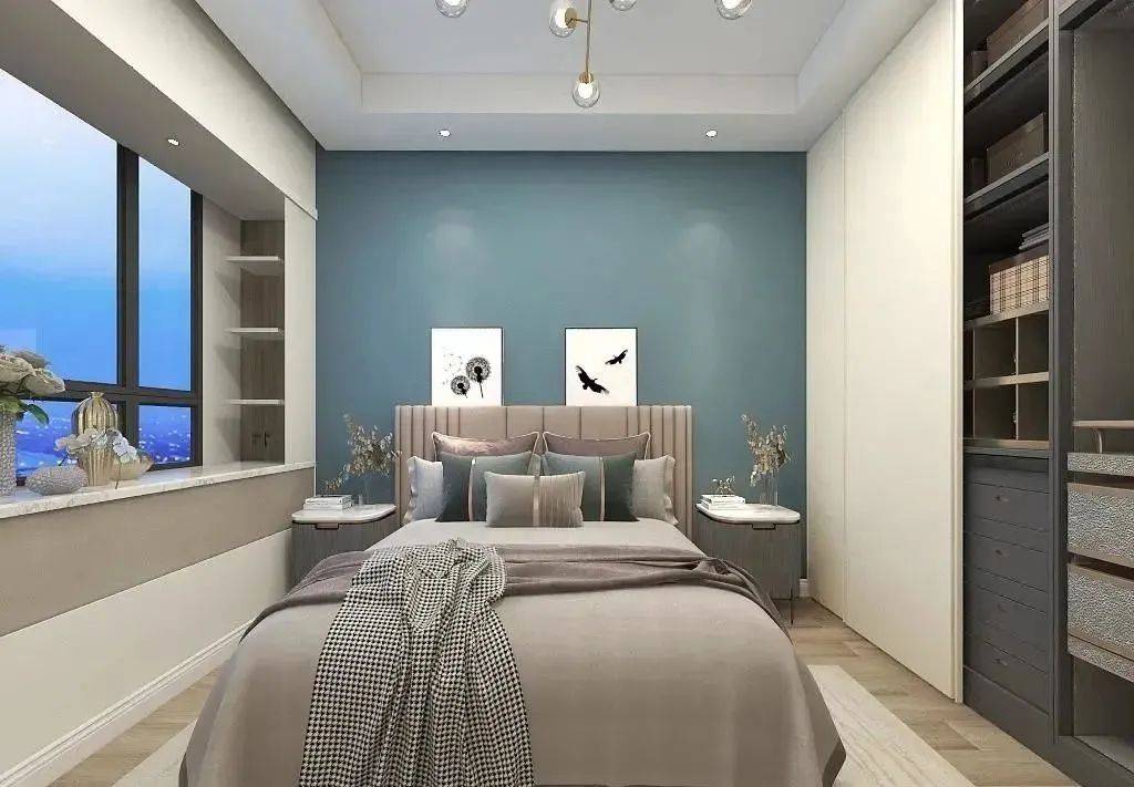 1. 主卧:奶咖 + 深蓝,轻奢中藏温馨