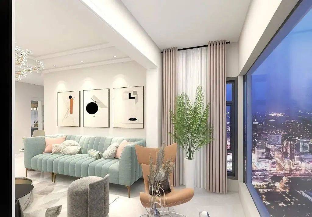 沙发背景墙仅用挂画简单装饰,墙面点缀让空间更显自然。浅灰色地面延伸视觉,将空间感突破到极致,整体氛围温馨又舒适。