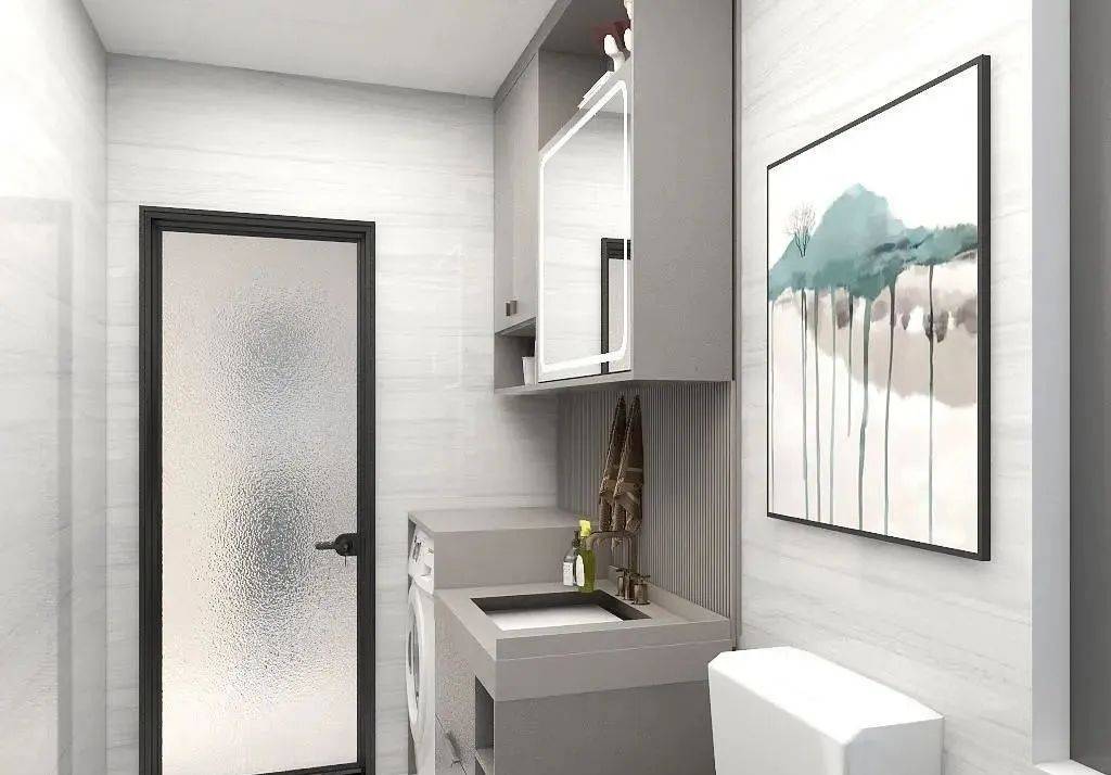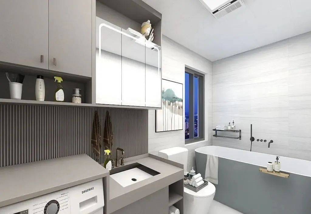 光影与细节:轻奢吊灯、防雾镜灯带、弧形垭口(部分案例)弱化硬朗感,暖光提升治愈氛围。