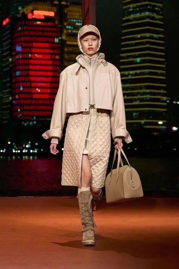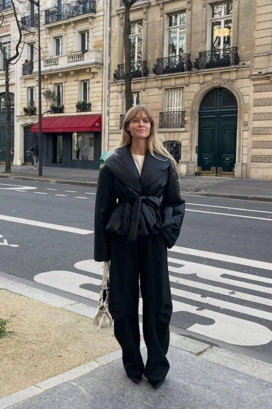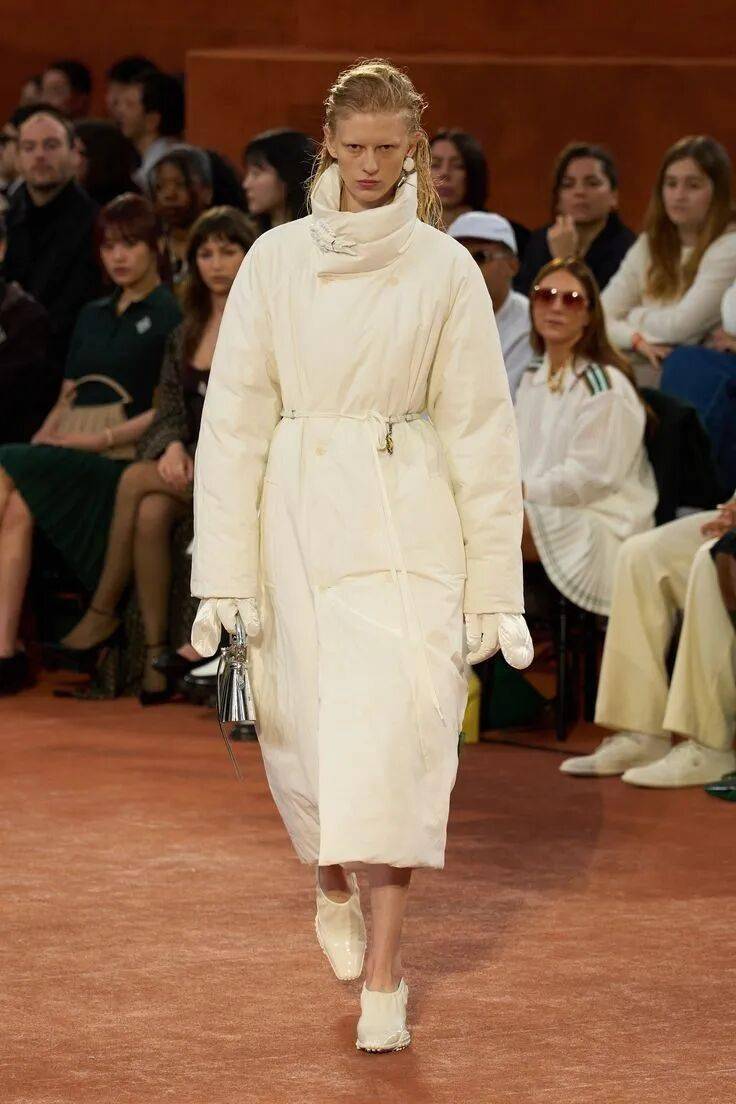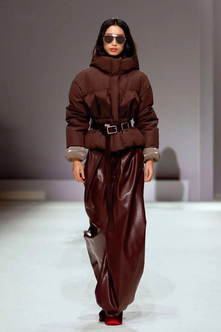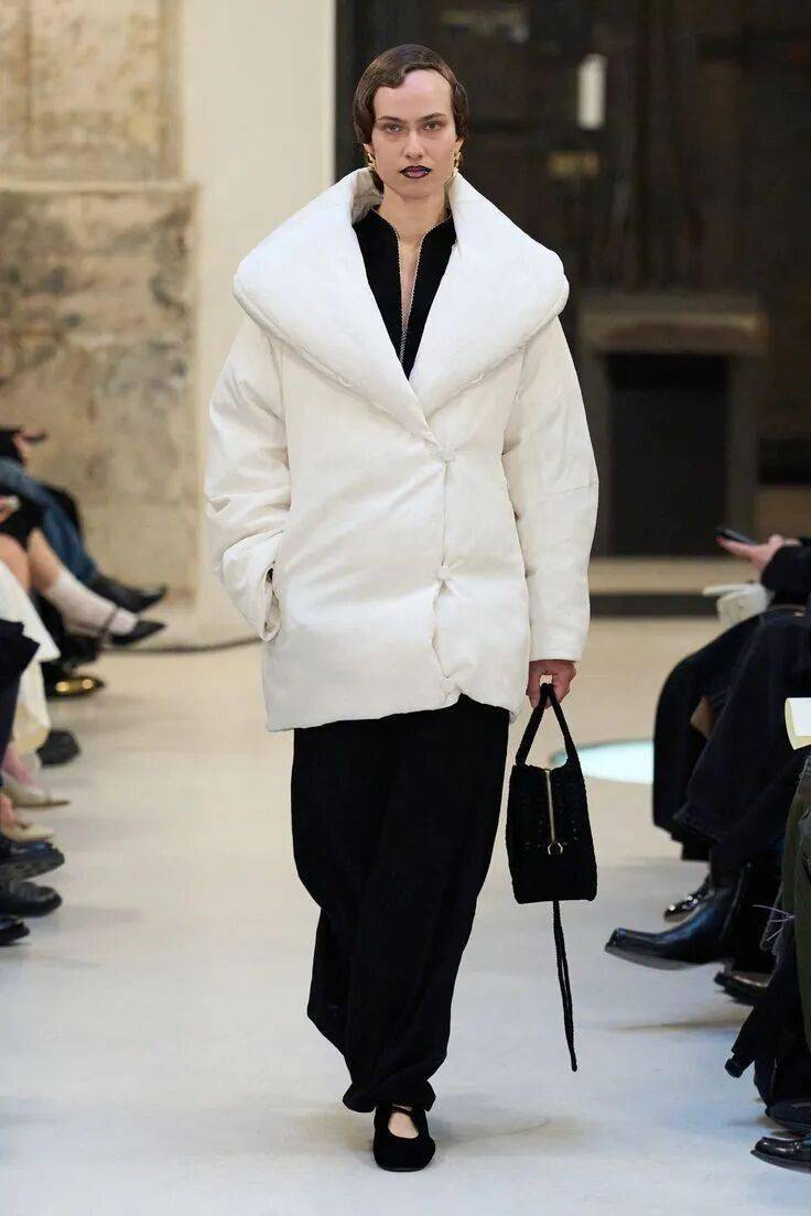 廓形特征:宽大下摆+顺势领口,填充轻盈却保有包裹感,适合打造大气场造型。