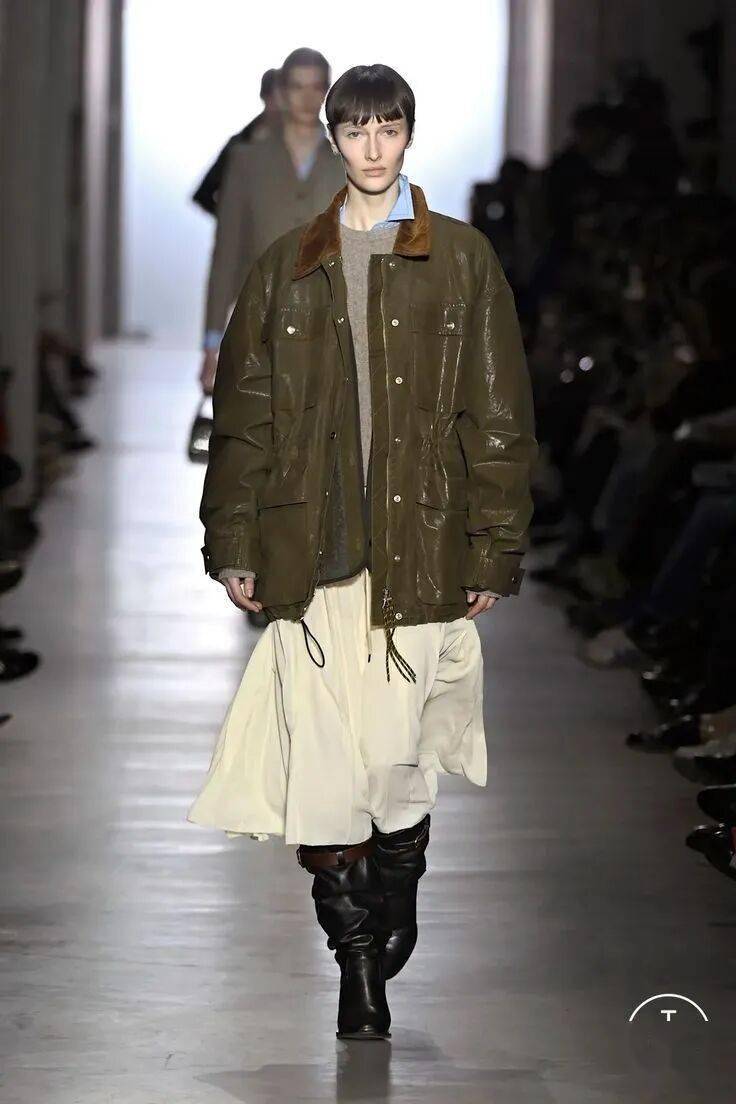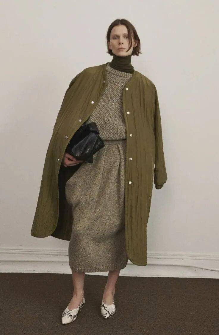 风格建议:搭配垂感裤装或及膝靴,选择橄榄绿、米白等淡彩色系增添轻盈。