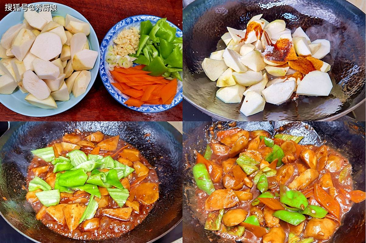 点评:这道菜酱香浓郁,芋头吸饱了汤汁后软糯入味,配上青椒的清爽,特别下饭!做法和红烧土豆类似,但芋头更糯更香,适合全家人的口味。