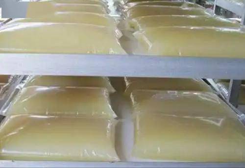 可是工业明胶就不一样了,它大多来自废旧皮革、皮鞋边角料、以及一些干脆不知道来源的动物皮骨材料。