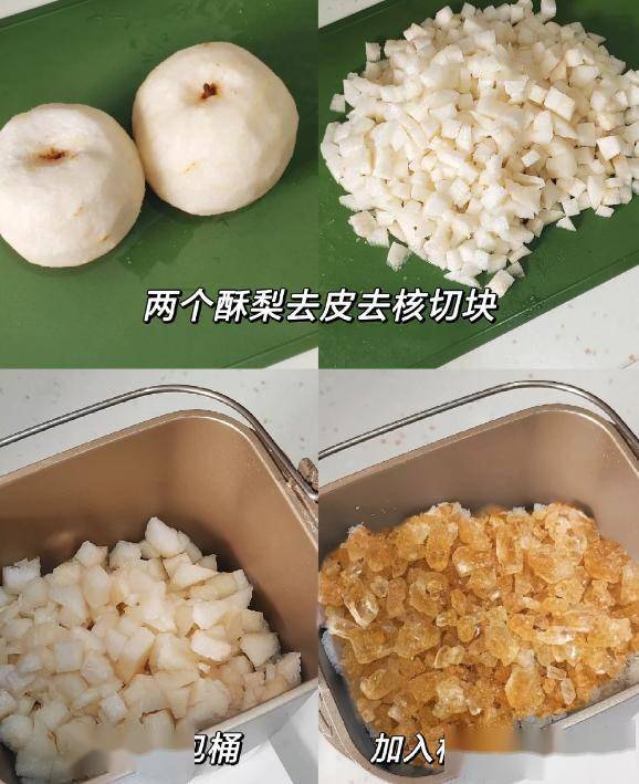 家里如果有闲置面包机,可以用面包机做秋梨膏,做法也很简单: