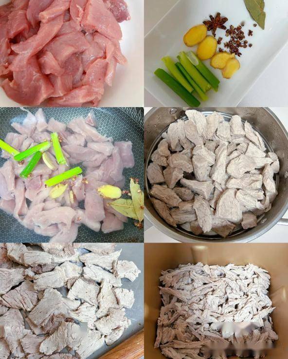 - 撕肉技巧:煮熟的肉装保鲜袋用擀面杖敲散再撕