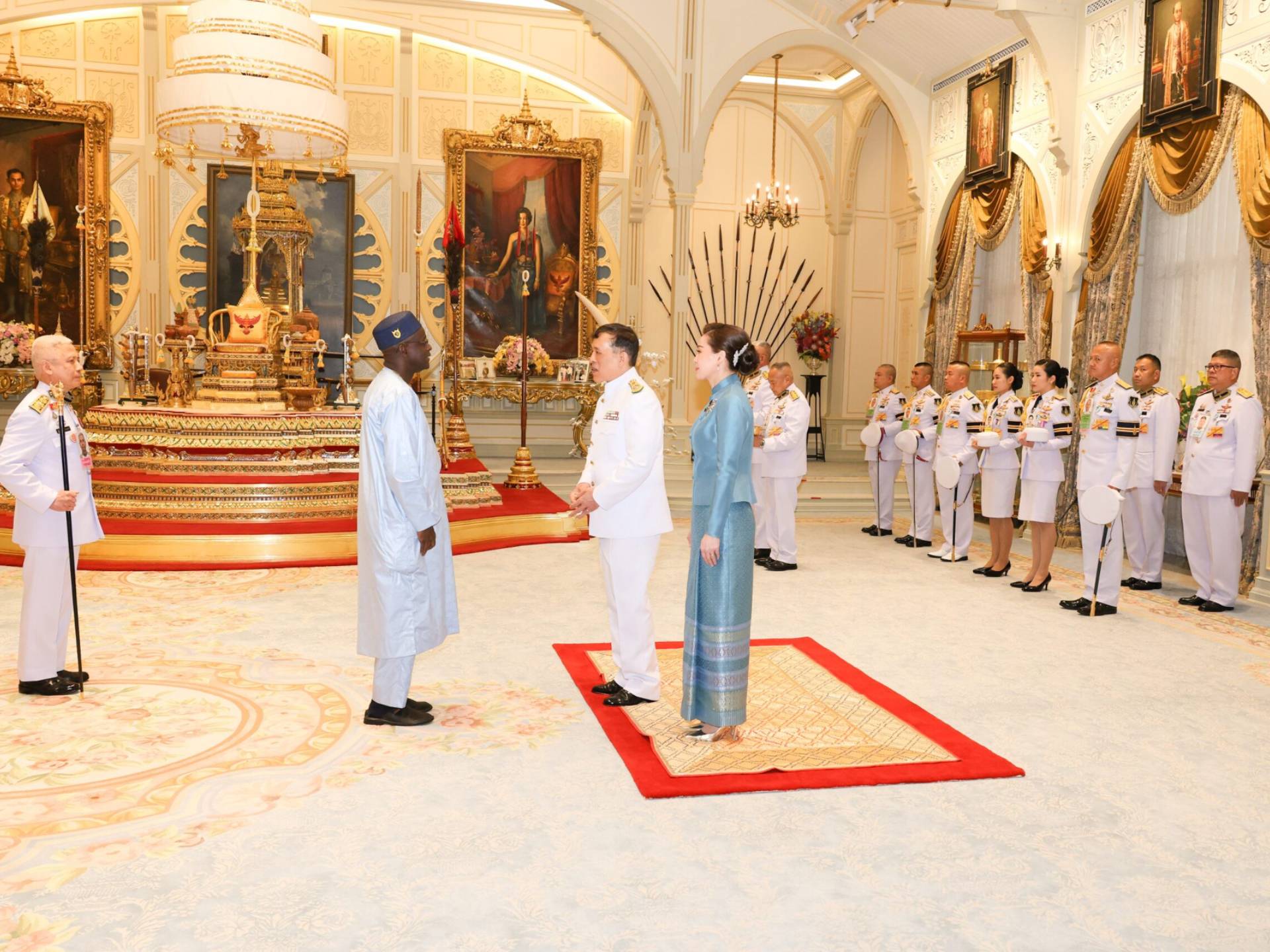 苏提达曾先后在日本航空和泰国国际航空担任空乘人员,就是在航班上结识当时还是王储的玛哈国王,2010年她进入了军方体系并快速晋升,在2016年晋升为陆军上将,今年3月获授海、空军上将军衔,因而成为了泰国历史上首位拥有陆、海、空三军上将军衔的女性。