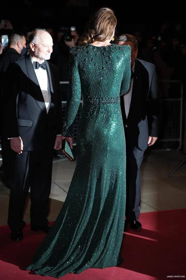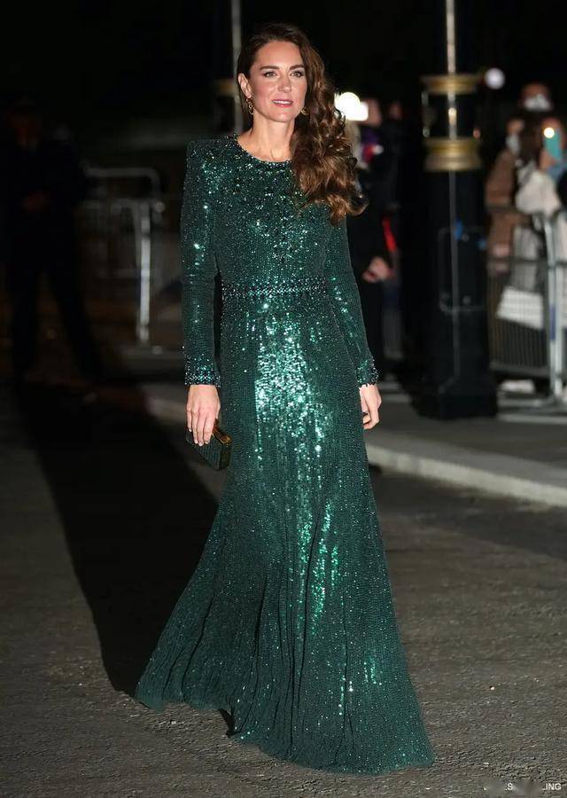 王妃身着詹妮・帕克汉(Jenny Packham)的祖母绿亮片长裙出席汇演。
