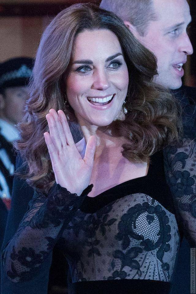 凯特在 2019 年皇家综艺汇演上身着黑色蕾丝礼服。