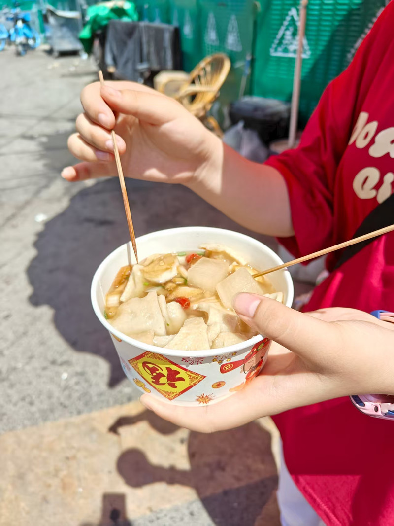8月4日:行:哈尔滨-沈阳 宿:沈阳(初见. 曼舍酒店式公寓) 早上乘坐哈尔滨西-沈阳北高铁到达沈阳,耗时2个小时多点,出站乘坐地铁至预订酒店(地铁口),因为来的早还没有合适房间腾出,我们就把行李寄存在酒店前台,然后打车前往西塔美食街,这条街是东北三省除朝鲜族自治区域外最大的朝鲜族聚居区,街道两侧聚集了许多经营辣白菜、米酒、泡菜、鱼饼、打糕、寿司、炸鸡等朝鲜族特色美食的商铺,味道都差不多,如果不知道去哪家,那就根据网上的攻略去打卡那几家网红店铺即可。(小贴士:晚上来更出片)。据说,现在沈阳土著更倾向于去苏 家屯满融村吃更正宗的朝鲜菜。我们漫无目的随便逛了一圈后就打车去了沈阳的中街:中国第一条商业步行街,从地铁中街站开始,漫步中街步行街,和大多数旅游城市的步行街一样,商铺林立,各种小吃的吆喝声此起彼伏,在这里我们吃到了沈阳的特产:鸡架,19.9一个,其实这个物价在旅游城市不算贵,直到我们在大东副食看到了10元2个的鸡架,味道相差无几。继续前行发现一处很东北的建筑,走进一看:刘老根大舞台,本想体验一下东北的二人转表演,但奈何时间有限就作罢了。前行不多远左拐就到了沈阳故宫了。可正好赶上了故宫修缮,不开放,不远的红墙绿瓦下,一水儿拍照的格格和阿哥们,甚是热闹。不过和北京故宫相比,沈阳故宫更像是自建房,北京故宫则相当于改善型住房了。由于张学良大帅府游客太多,我们也不太感兴趣,就不做打算了,我们沿着故宫一直往前走就到了大东副食市场,据说,大东副食才是沈阳本地人的美食天堂,里面有各种东北特色食品,如酸梅汤、宫廷金丝饼、蟹黄酥、八旗手工肠、四喜丸子(超大)、大列巴等各种熟食,日均客流量超2万多人次,关键价格很东北(实惠)。我们吃了几个小吃已经吃饱了,孩子还想吃心心念念的四喜丸子,奈何肚子不给力,装不下了,只能带着些许遗憾出门打车回到酒店。正好我们居住的酒店下面就是彩电塔夜市,夜幕降临,彩电塔夜市热闹开场,这里汇聚了来自天南海北的美食佳肴,有经典的炸串、铁板烧、烀饼等,还有各种新奇的小吃种类,摊主们热情洋溢的吆喝声与升腾的香气交织成一幅动人的画卷。若你踏足沈阳,渴望探寻那最正宗、最贴近生活、最富市井气息的沈阳特色,那么彩电塔夜市无疑是众多老沈阳人的首选推荐。我们随着人流走到头,找到了一家面馆:老四季,没想到,真香!据说鸡架+抻面,是沈阳人的“灵魂CP”,5块钱一碗的鸡汤面,性价比直接拉满,8块钱的鸡架,啃起来超解压,本地人给的吃法:辣椒油和醋是灵魂,浇上一勺红油,再滴点醋,酸辣开胃,越嚼越香,服务嘛,基本没有,服务员只负责收盘子,自个儿排队取餐,毕竟来这里,吃的是口味和情怀,要的就是“自己动手,丰衣足食”的市井感,这才对味儿。吃完饭再次经过夜市回酒店,经不住诱惑,又买了土豆泥炒焖子、大油边,回到酒店配上本地特色饮品八王寺大白梨,吃的那叫一个香,看来在沈阳减肥是不可能的了。