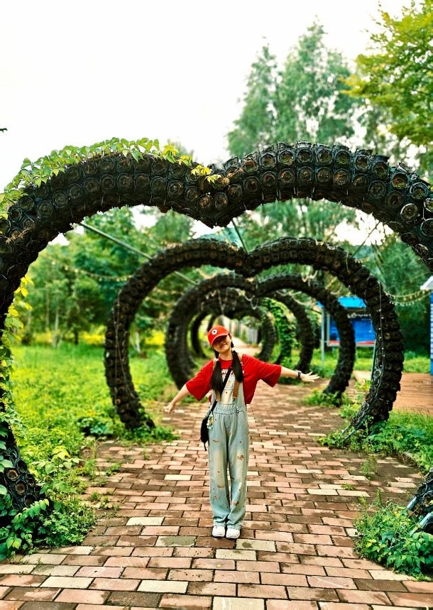 7月30日:哈尔滨儿童公园-牡丹江市横道河子(行:哈尔滨西-横道河子东;宿:横道河子吉尔民宿) 今日份主打一个休闲,这就是自由行的益处,不用赶时间。来之前关注过一个哈尔滨的乒乓球主播,得知他经常在儿童公园直播,加上孩子一直在打乒乓球,所以就想趁此机会和他交流一下,晨起吃了早饭就打了个滴滴直达儿童公园,虽然叫儿童公园,可锻炼身体的基本都是中老年人,不过很多设施都是为儿童准备的,像小火车,大象滑梯等等。让我们惊喜的是,这个公园里有很多花栗鼠,也很亲人,我们拿出随身带的小零食一路投喂,甚是开心。经过路人指点,我们找到了打乒乓球的地方,打球的人很多,各个年龄段的都有,水平也参差不齐,但氛围很好,也很友好,得知我们是来交流的,马上有球友就让出位置,让我们先上,但是来时匆忙,忘了带球拍,球友又拿出他的备用拍子让我们试手,不得不说,哈尔滨的市民还是很热情友好的,不过不巧的是,我关注那个主播今天没来,有些遗憾,玩了一会儿,看着时间也差不多了,我们就和球友们告别,期待下次再来交流吧。由于离火车发车还有一段时间,我们决定找个地方先吃午饭,搜到西站附近有一个购物广场,叫西城红场,据说是本地人经常光顾的场所,直接打车到达目的地,西城红场距离哈西客站800米,其前身为哈尔滨机联机械厂旧址,保留四幢包豪斯风格老厂房,传承“蚂蚁啃骨头”工业精神遗产,所以里面有很多蚂蚁的装饰,由于时间紧,我们只是匆忙在负一层吃了个饭,没有逛,后来我们离开哈尔滨之前还专门来逛了逛,还是挺有特点的。