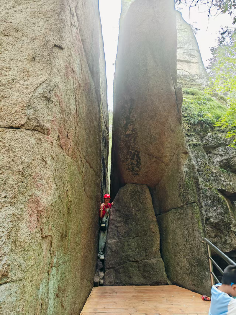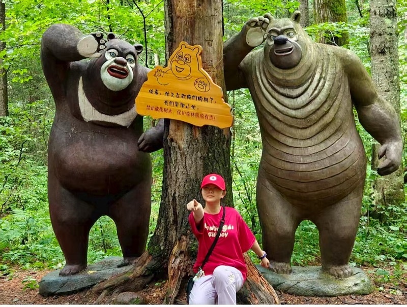 8月2日:行:五营森林公园-汤旺河林海奇石景区 宿:汤旺河(亚欧巄城堡酒店) 07:30 酒店自助早餐后,原定要去【升辉早市】,但大家都觉得各地早市都大同小异,不必刻意前往了,于是直接前往【五营国家森林公园】,游玩时长约 3 小时。五营国家森林公园有中国规模最大、保存最完整的红松原始森林带。首先坐观光车到达公园大门,沿着左手线路行进,一路上能看到很多可爱的花栗鼠,来这里,必打卡的就是和它们的亲密接触,这种小动物在北方森林中最常见,身手敏捷、娇小可爱,游客给它们喂瓜子,一点不怕人,吃的很投入,运气好还可以抚摸一下它们那毛绒绒滑溜溜的身体,感受大自然的野趣,开心极了(小贴士:最好带上除瓜子以外的其他坚果类食物,这样可以大大增加吸引它们的机会;花栗鼠很多,不用扎堆,自己找见去挑逗它们更有意思)。走不多远就能看到一列复古的森林火车,名曰“少奇号”,拍照蛮有氛围感。从少奇号出发,就开启了一段徒步旅程,沿着木栈道漫步,大口呼吸着纯净的空气,全身心都得到了放松(这里负氧离子高达7000+,是一个洗肺的好场所),沿途有很多高大挺拔的红松,几个人也搂不过来,一直走到园中园站,乘坐景区环保处前往下一个景点-森林浴场,到达森林浴场后,需要登台阶向上攀爬,再经过响水溪、观音山,最后回到乘车点,这条路线大约需要2个小时左右,我们一家都不想爬山,所以在山脚下稍事休息,补充了一下体力就继续乘车前往下一个景点-天赐湖,天赐湖旁边有一个呐喊泉,10元3分钟,大声喊可以喊出喷泉。由于体力比较疲乏,所以我们也没有着重在此停留,从天赐湖乘坐环保处返回景区正面,结束了本次旅程。中午司机师傅带我们到了一个吃饭点比较集中的地方,我们在这里吃到了非常好吃的朝鲜冷面(正不正宗不重要,关键合我们的胃口)。稍事休息后,下午15:00 左右前往【汤旺河林海奇石景区】,游玩时长约3小时。 汤旺河林海奇石景区是黑龙江省伊春市的国家5A级旅游景区,以花岗岩石林地貌和原始森林生态为特色,这个景区建设的非常好,景区内绿树成荫,松柏挺拔,仿佛置身于一个天然氧吧;奇石林立,形态各异,让人不禁感叹大自然的鬼斧神工。同样还是乘坐观光车到达终点,然后往回逛,相比上午的五营森林公园,这里的设施更加完备,还是沿着石阶一路向上,路两旁不时会有花栗鼠蹦出来寻找食物,这里的花栗鼠似乎更喜欢花生多一些,看来瓜子吃多了也腻啊!走不多久便到达了一个景点:一线天,据说最窄处仅35厘米,需侧身通过,游客穿行其间,既能感受到大自然的伟力,也能体验到探险的乐趣,某些不信邪的游客通过时就被卡在中间,进退不得,很是尴尬;而穿过的则会大喊上一句:“看来我还是很瘦的”。汤旺河景区很大,如果全部逛完需要很大耐力,我们还是选了最常规的一条线路,沿着氧吧长廊往山下走。沿着长廊走,可以听到潺潺的溪水声和鸟鸣声交织成美妙的乐章,感受大自然的和谐与宁静,休息中再吃上一根景区特产蓝莓冰棍,真是惬意。我们沿着木头栈道边走边拍照,这里的人工景点也很出片,到小瀑布处我们实在走不动了,走出栈道去路边站台乘坐观光车返回起点。至此今日游览结束,司机师傅带我们到了酒店安排好住宿,然后又带着我们去吃了晚饭(依旧是朝鲜冷面),之后返回酒店休息。在这里,不得不提一下今晚我们的住宿酒店:汤旺河亚欧巄城堡酒店,总体来说,这次在亚欧巄城堡酒店的住宿体验相当不错,这家酒店坐落于汤旺河国家公园旁边,就像是森林里的一座梦幻城堡,四周环绕着郁郁葱葱的大树,呼吸间都是满满的富氧离子,进入酒店大堂仿佛进入了中世纪的罗马,骑士、盔甲、壁炉、带角驯鹿的头和弓箭,甚至天花板绘制的也是西方诸神的画像,我们入住的是酒店的古典欧式房间,每个房间的标识都是古罗马神话中的人物,房间内部装修中西合璧,细节处无不体现出设计者的智慧,房间超级大,尤其挑高很高,接近4米,两张1.8米的大床,床品柔软而舒适,晨起在缥缈的薄雾中,很像唐顿庄园那种感觉。暑期旺季一晚的价格不到700元,性价比还是很高的。