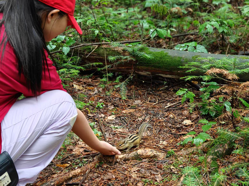 8月3日:行:上甘岭溪水公园—哈尔滨 宿:哈尔滨西站(U.米 民宿) 7:30 酒店自助早餐,这里的早餐种类还是很丰富的,从传统的中式早点到西式面包、煎蛋,应有尽有。吃饱喝足后,开始了活力满满的美好一天。准备出发时突然天降大雨,而且不见停的趋势,我们一路顶着倾盆大雨抵达了最后一个景点:上甘岭溪水公园,此时天公突然作美,雨停了。此上甘岭非抗美援朝战场那个上甘岭,同名而已。溪水森林公园和昨天那两个森林公园景观大致相同,但在这里我们却收到了意外的惊喜,那就是这里的花栗鼠更加的亲人,甚至可以爬到人的手上来觅食,如果有充足的时间一定要和它们好好互动。还是景区观景车把游客拉到终点,然后依台阶而上,这次的台阶更陡,不一会我们就气喘吁吁了,终于登顶后到达一个平台,大家都在排队登观景塔(每次10人),她们俩都恐高,就在底下休息等我,排了大概半个小时终于轮上了我,塔分两层,登顶层后,俯瞰整个小兴安岭的林海!红松林浪,绿得让人窒息,从塔顶下来,沿着木头栈道一路前行,雨后的林间空气通透清新,植物鲜亮,阳光穿林呈现出完美的丁达尔效应。来溪水公园怎能不赏溪呢,这里的溪水步道比汤旺河的溪水步道更美,赤脚或穿凉鞋浸入溪水中,冰凉刺骨的溪水,在这炎炎的夏日更为徒步的人儿增添了一份清凉。沿着蜿蜒的小径漫步,溪流倒影,耳畔是潺潺的溪流声,清脆悦耳,一路白桦林、野花和青苔相伴,仿佛误入了绿野仙踪的世界。最大的惊喜来自途中偶遇的小松鼠,特别可爱,它一路跟着我们讨吃喝,当孩子抓一把瓜子花生摊开手掌,它会迅速跳上来,快速的磕开塞入嘴中,直至塞到两腮饱满还不罢休,此时轻柔地抚摸它也不会躲闪,可爱极了。快到出口还有一条小路通往萌宠乐园,我们此时也走累了,于是放弃前去参观,出口找车准备返程了,中途把那两个小姐姐送到了伊春的机场,她们赶时间回沈阳,我们在当地吃了顿午餐,然后返程返回哈尔滨市区,18:30 左右抵达哈尔滨,送至哈尔滨西站酒店。晚上带着全家又去了一趟西城红场,一直逛到商场关门才返回酒店歇息。