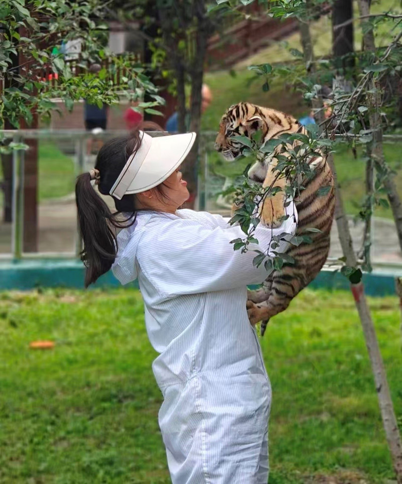 7月31日:行:横道河子东-哈尔滨西;宿:哈尔滨99号公馆中央大街店。 清晨在鸟语花香中醒来,推开窗户,映入眼帘的是窗外那一捧捧迎着朝霞绽放的小野花,在阳关的映衬下格外夺目,似乎我们没有住在房间里,而是露营在了开满鲜花的大自然。老板开车直接把我们送到了虎园,因为来的较早,游客还不算多,我们马上寄存了行李,然后检票入园,夏天去虎园一定要赶早,早起的老虎饥肠辘辘,特别适合互动投喂,一旦温度起来太热就去阴凉处午休了(和我们山西人一个习惯)。我们先坐通勤车(有铁栅栏包围)到达一处老虎聚集地观察,车旁围着几只未成年老虎正在争食打架,甚是热闹,车上售票员和我们推销了投喂的肉串,我买了50元的肉段,准备带孩子和老虎们互动一下。车子到达终点后,我们凭票去换上肉,然后开始了“惊心动魄”的互动之旅,所有的成年虎都被圈在钢化玻璃围成的小园子内,每个园子会有3-4只老虎,由上而下会有几个投喂口,我们先大概溜了一圈,等大家把手里的肉扔的差不多了,我们观察到有几只老虎蓄势待待,张牙舞爪了,然后走到它们身边,夹上肉挑逗,等它们口水流的不断舔舐玻璃的时候再投喂给它,互动效果非常好,也见识到了老虎的威力,第一次这么近距离观察它们,舌头居然都有倒刺,这要舔在人身上,后果可想而知,后来还喂了两只狮虎兽,50块很快喂完了(温馨提示:一定要留几块肉喂后面的黑瞎子,互动更出彩)。打算往山下走,正好碰到饲养员阿姨带着刚出生不久的小老虎和小狮子出来放风,要不说啥动物也是小时候可耐啊,一群萌娃在那里打打闹闹,让人们看的乐不可支,此刻虎头虎脑也终于具象化了。带着依依不舍的心情离开了小可爱们,我们沿着下山的路往回走,顺带看了黑瞎子园和百鸟园,路边的孔雀,鹦鹉和柯尔鸭都可以互动。可怜的孔雀和人们互动的快秃了,一开屏也是稀稀拉拉的几根,像极了本人的头顶,瞬间有种同病相怜的感脚!下山的路很快,其实入园可以不用坐公共交通,走上山也没多远,路边还有一些互动点,坐车就完美错过了。出了园我们找了家饭店,依旧是筋饼,这次学乖了,点了一份菜,刚刚好。吃完饭步行至车站等车,13:35分坐上了回哈尔滨的动车,15:06到达哈尔滨站,打车回到酒店休息(哈尔滨站还是蛮有特点的,它是纯欧式建筑风格的站房,还原了百年哈尔滨站的历史风貌。钢铁艺术和巴洛克风格结合,很像哈利波特系列中的魔幻场景,也是游客抵达哈尔滨后的一个网红打卡地)。