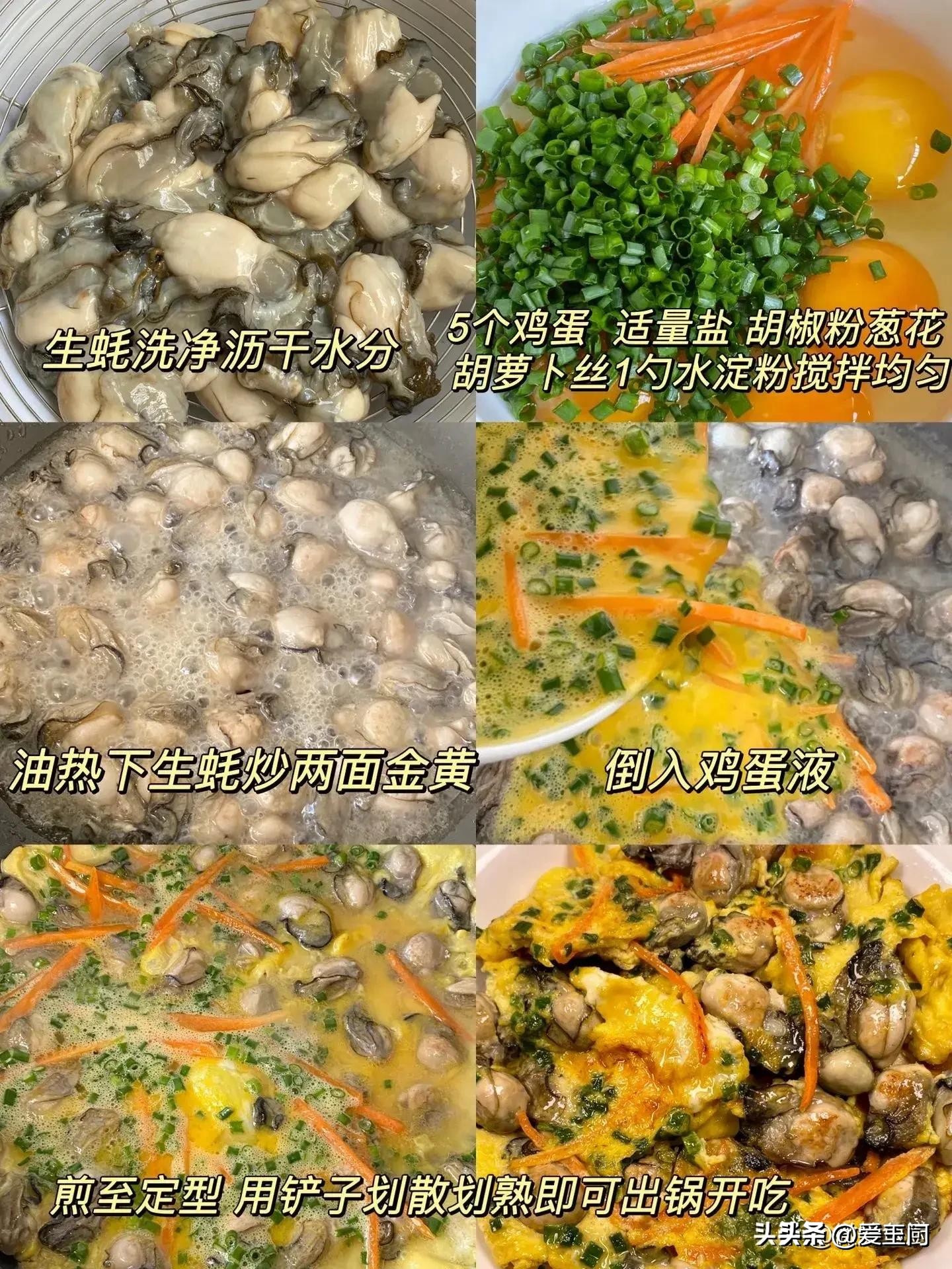 生蚝煎蛋! 这道菜将生蚝与鸡蛋一起煎制,生蚝的鲜美与鸡蛋的嫩滑相得益彰,口感丰富,味道鲜美。主要食材:生蚝、鸡蛋、葱、胡萝卜丝、调味料!