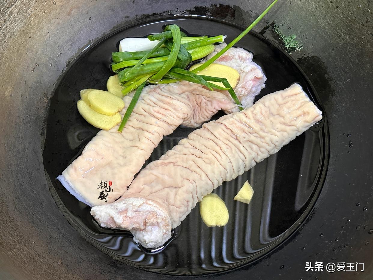 步骤二:这般处理过后的大肠捞起晾凉,切成小块备用。